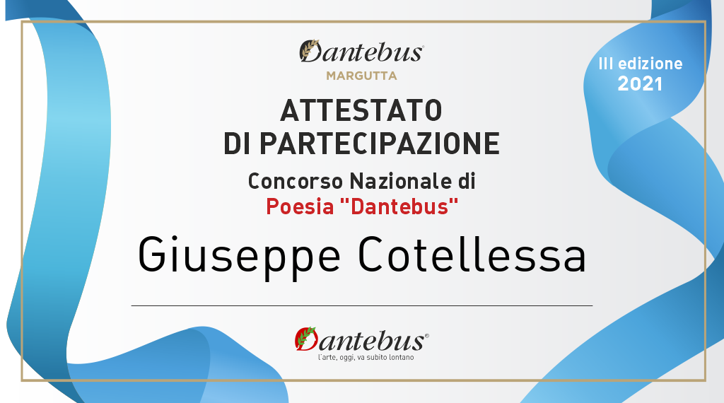Attestato di partecipazione del Dott. Giuseppe Cotellessa al concorso Nazionale di Poesia "Dantebus" / Certificate of participation of Dr. Giuseppe Cotellessa in the National Poetry Competition "Dantebus" / #31-7-2021